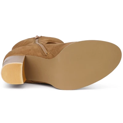 There are 3 colors for these ankle-heel boots in suede that can be chosen, including Black, Brown, and Burgundy. They are made of Faux Suede and they have non-slip outsole. The classic design of the ankle heels lends a timeless style to these Vivier boots. They are paired well with jeans, and are perfect for parties, dating, and working.