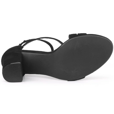 The chunky design is bolstered with self-tie ankle straps, complemented with crisscross finishes at the toe. Wear yours with floaty dresses for outdoor galas. Occasion: Office, Interview, Party, Casual, Halloween days, Christmas Days, Dating, Evening. Chunky Heel Sandals; Ankle Strap; Open Toe; High Heel; Vamp: Faux Suede; Outsole: Rubber; Heel: ABS; Heel Height: 3 3/8 inches.