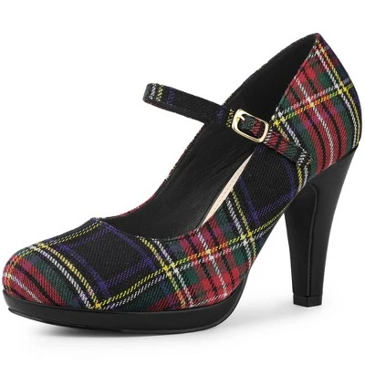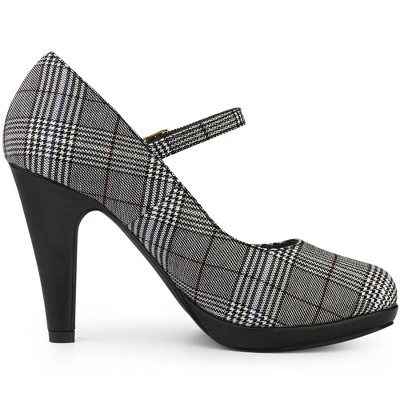 These ankle-strap heels have plaid prints upper and a stiletto heel to add a touch of height and style to your everyday look. Plaid and Houndstooth Prints, elegant and delicate. Platform; Ankle Strap; Stiletto Heel; Heels Pumps; Vamp: Fabric; Outsole: Rubber; Heel: ABS; Heel Height: 3 7/8 inches; Platform Height: 5/8 inch. Easy to go with all outfits. Wear them with jeans, trousers, dresses, shorts, or denim. Please check your size to make sure the item fits before ordering.