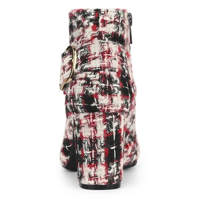 - Pointed Toe, Side Zipper, Buckle Decor, Chunky High Heel