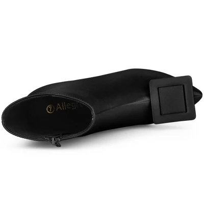 The design of the detachable square button on the toe of the booties not only adds a simple, fashionable, and generous style, but the satin material can bring out your stylish and elegant temperament. Detachable Buckle Decor; Ankle Boot; Stiletto Heels; Pointed Toe; Size Zipper; Vamp: Satin; Outsole: Rubber; Heel: ABS; Heel Height: 3 1/3 inches; Shaft Height: 5 1/8 inches.