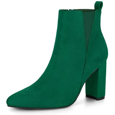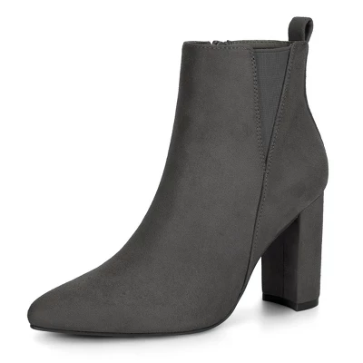 - Elastic Insert, Block Heel, Ankle Boots