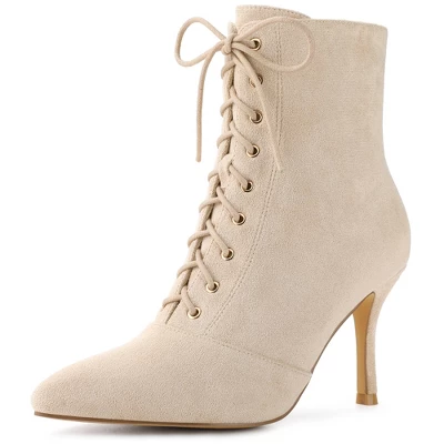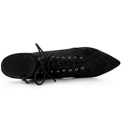 Allegra K Women’s Pointy Toe Lace Up Side Zip Stiletto Heels Ankle Boots