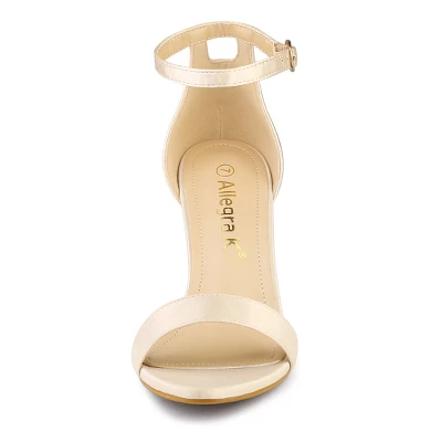 Allegra K Women’s Satin Open Toe Ankle Strap Chunky Sandals