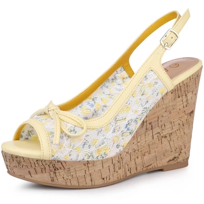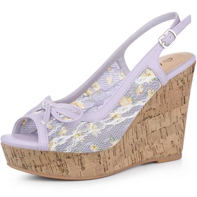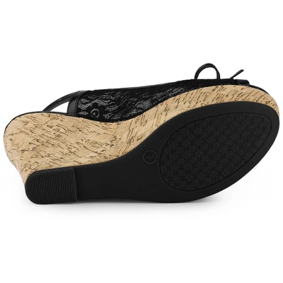 Allegra K Women’s Wood Platform Heels Bow Lace Wedge Sandals