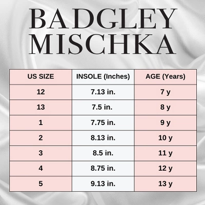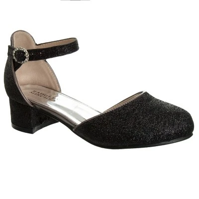 Badgley Mischka Girls Dress Heel Sandals. (Little Kids/ Big Kids). Add some sparkle to your little girl’s outfit with these glittery low heeled pumps. These shoes are perfect for parties, weddings, or any special occasion. They feature a round toe and a low heel for comfort and stability. The ankle strap has a rhinestone-embellished buckle that adds a touch of glamour. The shoes are made from manmade materials and have a buckle closure for easy on and off. These pumps come in various colors and sizes to suit your girl’s style and preference.These shoes run large. This is because the shoes have a generous toe box and a bit of extra room in the heel.We want you to be happy with your purchase, so if you are unsure of your size, please contact us and we will be happy to help you find the right fit.
