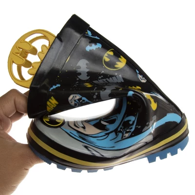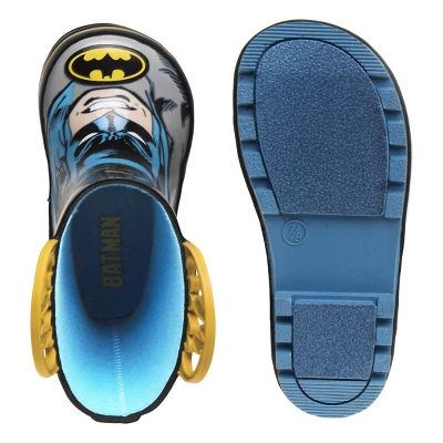 Batman Toddler Dual Sizes Batman Rainboots,These boots are lightweight and Flexible Made of soft rubber that lets young preschoolers run, skip, and jump in puddles without feeling stiff and constrained. Your kids won’t want to take them off!! Their non-insulated interior will allow little girls and boys to wear these beyond just springtime. These are lightweight enough to wear in Summer and Fall without being too hot or making little feet cold.