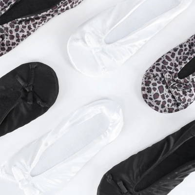 Classic and comfortable, this satin ballerina slipper is perfect for walking or lounging around your home. The slipper is easy to slide on and are machine washable so you can always keep them looking and smelling fresh. Perfect for wearing around your office, the office, or even under your dress at your next event like a wedding!