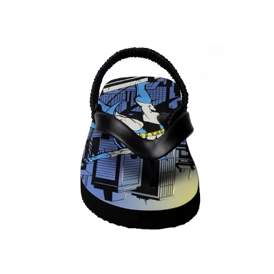 DC Batman Boys Toddler Flip Flops with back strap. Lightweight materials make these perfect for a variety of spring/summer activities at the pool, beach, or just about anywhere.The strap keeps your kid’s feet in place, so you don’t need to worry about him hurting his feet while playing.The flip-flop design makes these sandals a breeze to put on, even for a child!