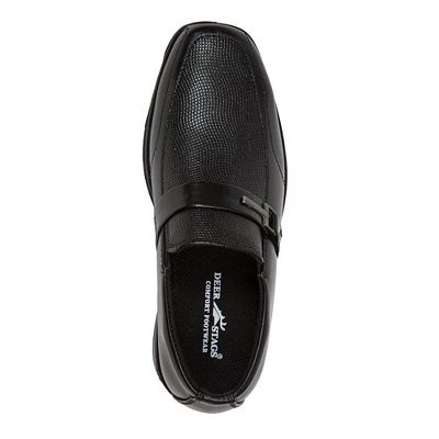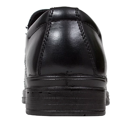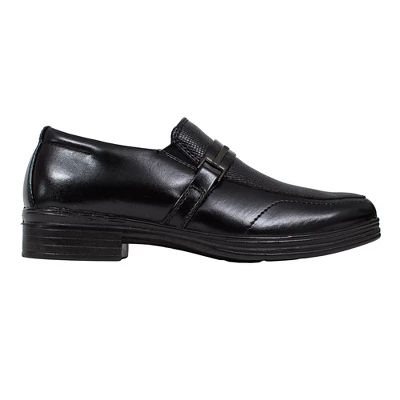 Stand out from the crowd in the Bold, a comfortable dress loafer for kids. No matter if they wear it with their school uniform, for a special event or a holiday, this loafer will delight all ages with its flexible gore inserts for easy on/off and soft EVA cushioned footbed. With simulated embossed leather accents and a decorative buckle, this simulated leather slip-on also has a non-marking outsole to prevent scuff marks.