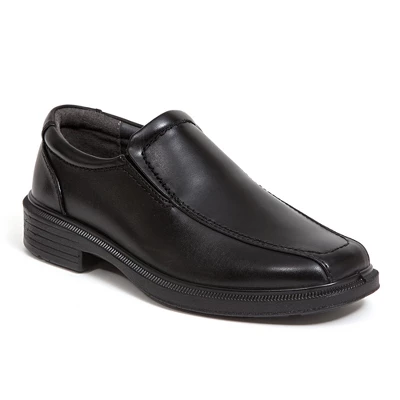 Like father, like son in the Greenpoint Jr.! Now your child can match Dad with his very own pair of classic square toe loafers. Made from simulated leather with runoff stitching, this shoe has extra comfort features inside: there’s extra padding around the ankle, a cushioned EVA insole and a non-marking PU outsole to avoid leaving marks on the floor. The elastic gore inserts make this a super-easy style to slip on and go – he’ll love not having to tie laces!