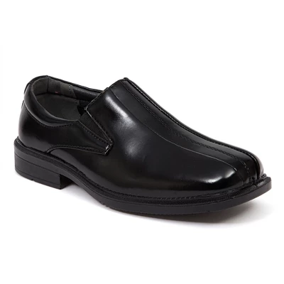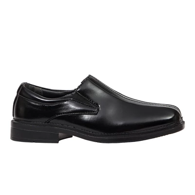 Let your kid soar in the Wings slip-on loafer – it’s so easy to put on, they’ll love that they can do it themselves. Made from simulated leather with a prominent center run-off stitch and square toe, this timeless style is perfect for school uniforms or for formal occasions. Flexible gore inserts on either side make slipping them on easy and allow for a flexible fit with different socks.