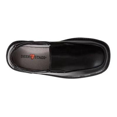 Here’s a stylish twist on a loafer classic! The Brian is ideal for school uniforms and formal wear. With beautiful added detail and stitching at the heel and collar, this simulated leather square toe loafer will be your kid’s new favorite pair. It’s so easy for them to put on by themselves, thanks to the flexible gore inserts on either side that make it a comfortable slip-on.