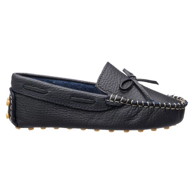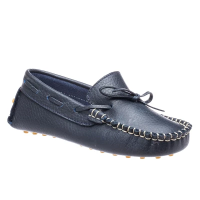 Driver Loafers— for the kid who is going places. Classic natural leather, front ribbon tie, and contrasting stitching provide the perfect mix of sweet and serious for your little gentleman. When it comes to grip, small rubber pebbles spread across the sole do the job. Cruising in and out of the playground has never been so easy—or adorable.