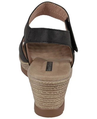 The GC Shoes Jorda slide sandal comes with style and comfort that stays even on a scale. This double strap slingback sandal gets its lift with a wedge heel that coordinates it beautifully with it’s double velco upper. It’s lift with a wedge heel that coordinates it beautifully with it’s double stay-put upper. This slide features two band velcro straps, Embellished accents and a contoured comfort footbed that will leave you with enough support all day long.