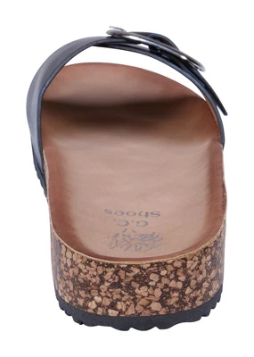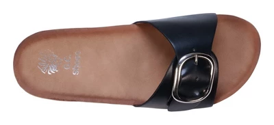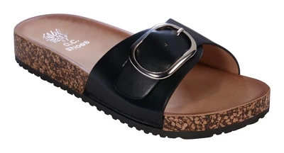Elevate your warm weather style with the luxurious Luna Slide Sandal from GC Shoes. This sandal puts a twist on the classic design, adding a touch of elegance to your look. Featuring a contoured footbed and cork midsole, it offers both comfort and support for all-day wear. Step into the Luna Slide Sandal and experience the perfect combination of style and functionality that will enhance your warm weather outfits.