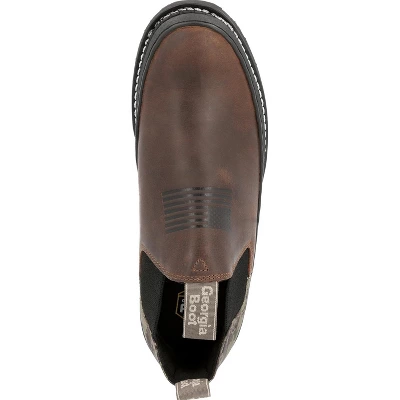 Show off your patriotism with this Georgia Boot green digital camo Romeo! It features a full-grain leather vamp with an embossed American flag, a 900 denier nylon heel in a green digital camo print and an oil-resistant rubber bumper guard.Twin gore panels ensure a comfortable fit and allow for easy slip on of the shoe. The inside is lined in high performance mesh and contains a removable memory foam insole.