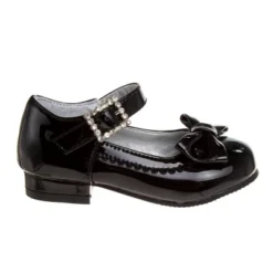 Josmo girl dressy low-heeled patent leather shoe with decorative knot. The safe low heel design is perfect for young walkers. Featuring a rhinestone buckle closure for easy on and off.These shoe design is perfect for dressy or special occasions, great for going to weddings, church and other formal events.Fits perfectly with a great variety of outfits.