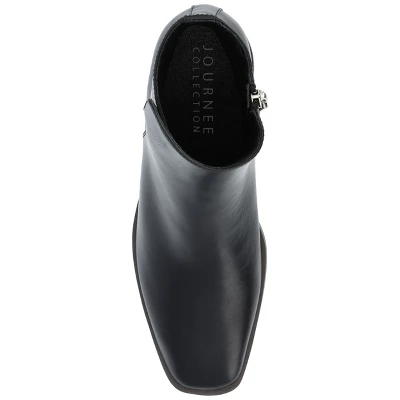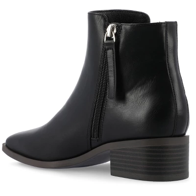 Introducing Cappri, the modern and chic bootie from Journee Collection that is perfect for fall. With a 1 1/2 in stacked block heel, square-toe, and high low ankle detail, Cappri is the perfect addition to any outfit. Made from vegan leather and fitted with an inside zipper entry and 4 mm Tru Comfort Foam™ insole, Cappri ensures maximum comfort for all-day wear, making it the fall staple you won’t want to live without.