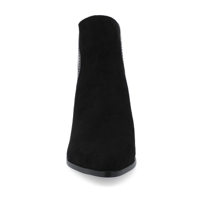 Meet Consuello, the classic and versatile bootie from Journee Collection that’s perfect for any wardrobe! Made from vegan leather with a two-tone accent. Consuello features a 2 in covered block heel, pointed-toe, and easy-to-use zipper entry for a simple and chic look. With a 4 mm Tru Comfort Foam™ insole, Consuello ensures a comfortable fit all day long and is great for mix-and-matching with any outfit.