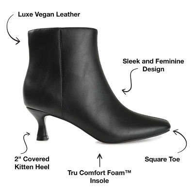The Kelssa booties by Journee Collection are so versatile they match everything from flared jeans to pencil skirts. These retro-chic booties feature a subtle zipper entry and square-toe design that adds a touch of sophistication to your look. To keep your feet comfortable all day long, these wide-width booties come with a 4 mm Tru Comfort Foam™ insole and soft vegan leather construction.