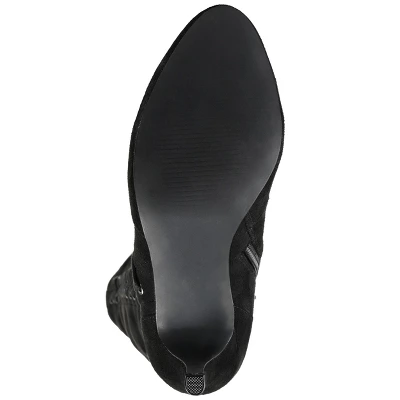 Get a look that serves up sass and class with the Abie boot by Journee Collection. This wide-calf boot features vegan leather uppers that rise above the knees, detailed with a retro lace-up design with metal accents. A slender stiletto high heel and a 4 mm Tru Comfort Foam™ footbed finish this over-the-knee style. At Journee Collection, our boot styles will have your outfit looking even better than before. They will give you that finishing touch that will have your outfit looking straight out of a magazine.