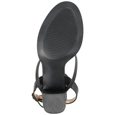 Strappy and stylish, the Anikah by Journee Collection. This must-have heel is crafted with soft vegan leather uppers and a padded footbed for extra comfort. A stacked block heel elevates the design. At Journee Collection, our pump styles will let you go from a fun night out with the girls to kicking back and relaxing at the end of the night without any trouble.