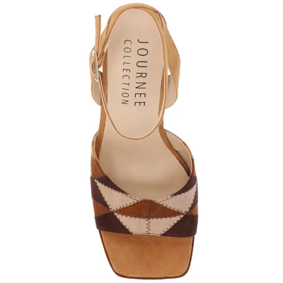 Our Asherby sandal from Journee Collection is sure to turn heads. This retro look has beautiful denim uppers, crisscross strap details, a geometric pattern, and a buckled ankle strap feature that will have your outfit looking better than before. Their 4 mm Tru Comfort Foam™ insole and open square toe will make your feet more comfortable than ever.