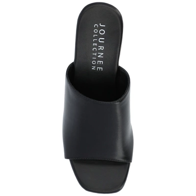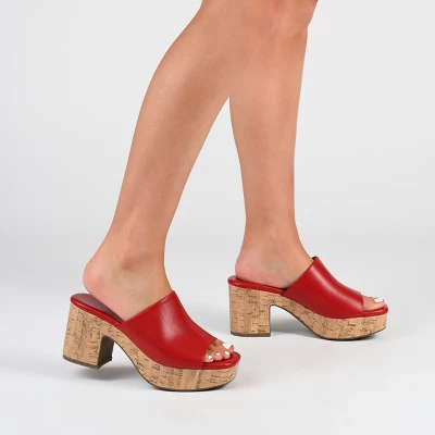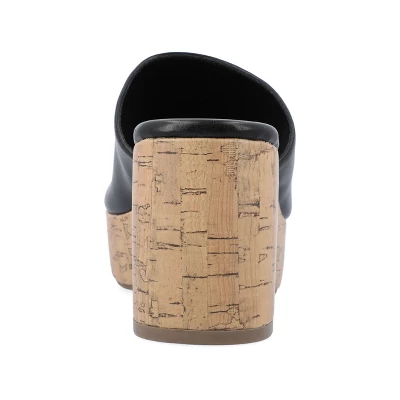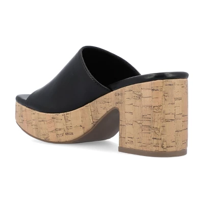 The Astter platform sandal from Journee Collection has a beautiful luxe vegan leather, faux cork outsole, single band design, and open round toe that will leave your feet looking the most stylish they have ever been. Their 4 mm Tru Comfort Foam™ insole will have you walking on a cloud with every step. Their slip-on closure makes them an easy grab-and-go shoe for any need.