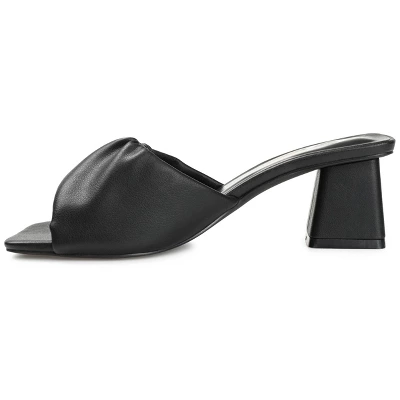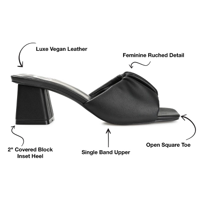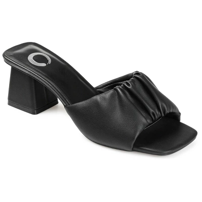 As comfortable as it is chic, the Briarr by Journee Collection. This slip-on silhouette features soft vegan leather and a padded footbed for the perfect fit. A ruched strap at the vamp tops the look, and an inset block heel adds a little lift. At Journee Collection, our pump styles will let you go from a fun night out with the girls to kicking back and relaxing at the end of the night without any trouble.