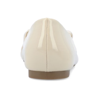 Our Clareene ballet flats from Journee Collection will make you more confident than ever. The patent vegan leather oversized tonal faux chain and pointed toe will make your outfit look better. Their slip-on feature and padded insole makes them perfect for when you’re finally ready to kick back and relax at the night’s end.