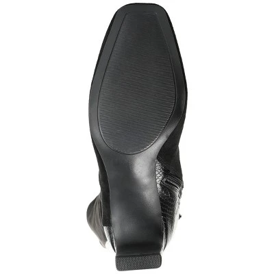An ever-so chic look for fall, the Elisabeth by Journee Collection. A two-toned accent and square-toe give this wide-calf boot a modern look. This effortless design features vegan leather uppers, a zipper entry, and a 4 mm Tru Comfort Foam™ insole. At Journee Collection, our boot styles will have your outfit looking even better than before. They will give you that finishing touch that will have your outfit looking straight out of a magazine.