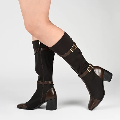 The classic riding boot reimagined the Gaibree by Journee Collection. This knee-high boot features a square-toe a 4 mm Tru Comfort Foamďż˝ footbed and soft fabric uppers detailed with a smooth zipper entry. A chunky block heel and buckled straps give this simple silhouette a fresh look. At Journee Collection our boot styles will have your outfit looking even better than before. They will give you that finishing touch that will have your outfit looking straight out of a magazine.