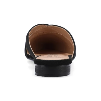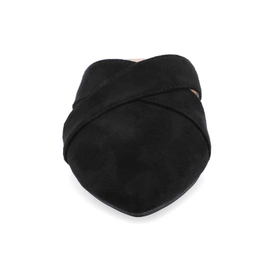 The Gerda mule from Journee Collection is absolutely elegant. Its almond toe and delicate crisscross details are dainty and feminine and its faux suede upper material is soft and beautiful. This mule looks stunning with skinny jeans wide-legged pants and skirts. This versatile shoe is available in a floral pattern and a mint color. At Journee Collection our flat styles will have you looking just as professional as the boss at work to having the cutest shoes when you go out for the night.
