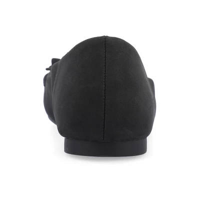 The Judy ballet flats by Journee Collection are an easy and classic choice for any outfit. They feature ruffled details and a pointed toe for a feminine touch. Made with vegan leather, they have a wide-width footbed and padded insole, ensuring all-day comfort without sacrificing style.