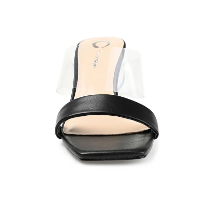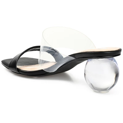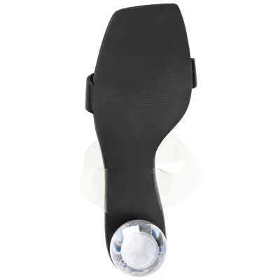 The details on this strappy heel speak for themselves. The July by Journee Collection is a slip-on heel with a clear lucite strap at the vamp and a sphere heel. Soft vegan leather and our signature 4 mm Tru Comfort Foam™ footbed complete the design. At Journee Collection, our pump styles will let you go from a fun night out with the girls to kicking back and relaxing at the end of the night without any trouble.
