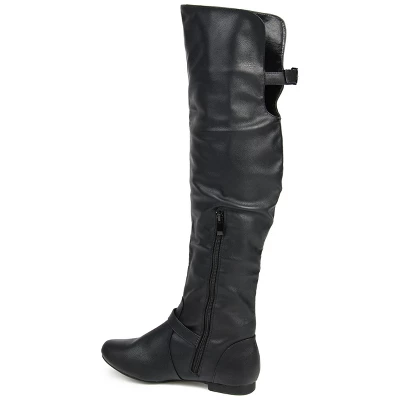 Dress in season-chic style with sleek riding boots by Journee Collection. These stylish boots feature supple faux leather uppers with vamps that rise in an over-the-knee style. Classic round toes complete the design. At Journee Collection, our boot styles will have your outfit looking even better than before. They will give you that finishing touch that will have your outfit looking straight out of a magazine.