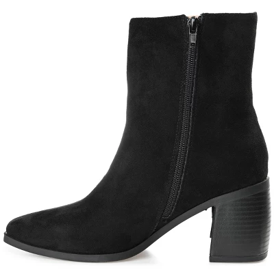 Fringe is back and here to stay. The Noriah bootie by Journee Collection borrows elements from the old west with fringe accents, a square-toe, and a stacked block heel. Soft vegan leather and a 4 mm Tru Comfort Foam™ insole perfect the fit. At Journee Collection, our booties will give you that comfortable yet stylish look, perfect for when you’re in the office all the way to a fun night out with the girls.
