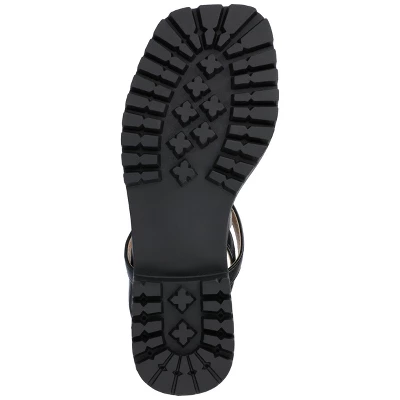 Our Nylah block-heeled sandals from Journee Collection will leave you doing a fashion show everywhere you go. Their luxe vegan leather, sling back, ankle strap, slim platform, treaded lug outsole, and open square toe will make them a perfect combination to go with any outfit time and time again. The pull-on closure will make them an easy grab-and-go shoe without worrying if they’ll match or not.