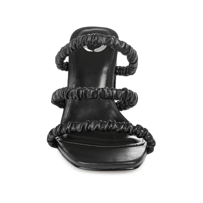 An eye-catching look for summer, the Reagaan by Journee Collection. This breezy heel features vegan leather straps detailed with ruching throughout for a fresh look. A covered block heel and padded insole finish the design for extra comfort. At Journee Collection, our pump styles will let you go from a fun night out with the girls to kicking back and relaxing at the end of the night without any trouble.
