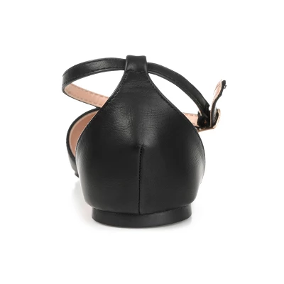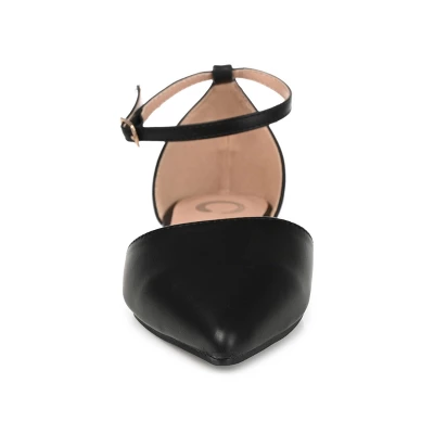 Create your chic style in pointed toe flats by Journee Collection. Premium faux leather uppers highlight pointed toes and raised back heels with a dainty ankle strap. Padded insoles create a comfortable fit to complete the design. At Journee Collection our flat styles will have you looking just as professional as the boss at work to having the cutest shoes when you go out for the night.