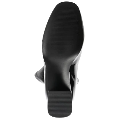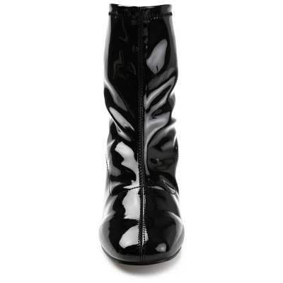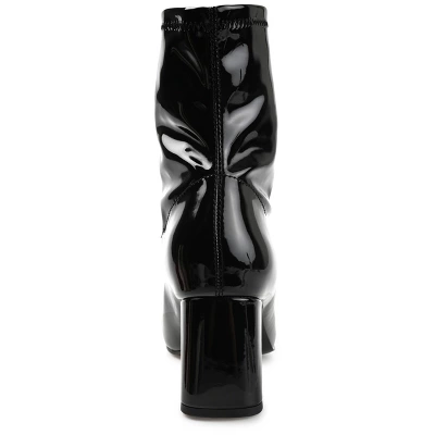 Add 70s glamor to any look, from jeans to miniskirts with the Reice bootie by Journee Collection. This retro bootie is the definition of effortlessly chic with a square-toe and patent vegan leather uppers. A block heel paired with a 4 mm Tru Comfort Foam™ footbed makes them super comfy but flattering. At Journee Collection, our booties will give you that comfortable yet stylish look, perfect for when you’re in the office all the way to a fun night out with the girls.