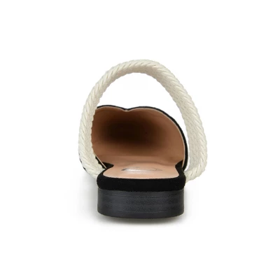 Look and feel your best in this everyday flat by Journee Collection. The Roxeene is a slip-on mule with man-made two-tone details and a sweetheart topline. A braided band at the vamp adds the perfect amount of texture and a padded footbed provides a comfortable fit. At Journee Collection our flat styles will have you looking just as professional as the boss at work to having the cutest shoes when you go out for the night.