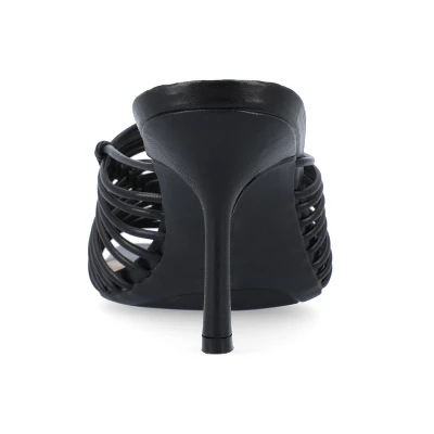 The Saskia heels from Journee Collection are sure to catch compliments every time you wear them. With their luxe vegan leather, caged design, stiletto heel, and open toe, this style offers a bold but easy finish to your favorite looks. A 4 mm Tru Comfort Foam™ Insole finishes the design for extra comfort.