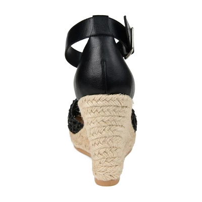 Embrace the espadrille trend with the Sierra from Journee Collection. The woven faux leather detail on the closed toe material is a showstopper and the ankle strap and square buckle accent add the perfect flare. It features a beautiful espadrille design on its tall 3 ďż˝” wedge heel and a soft cushioned insole for all-day comfort. At Journee Collection our sandal styles are going to be perfect for any occasion. Whether that be a formal business or casual dress these sandals will be a perfect match.