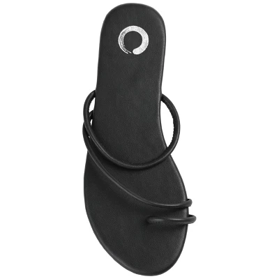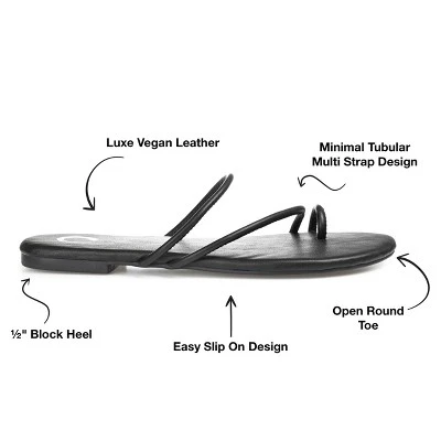 Keep it simple with the Tanaya by Journee Collection. A chic loop at the toe and slim tube straps create a foot framing fit. A padded insole and soft luxe vegan leather complete this slip-on design. At Journee Collection, our sandal styles are going to be perfect for any occasion. Whether that be a formal, business, or casual dress, these sandals will be a perfect match.