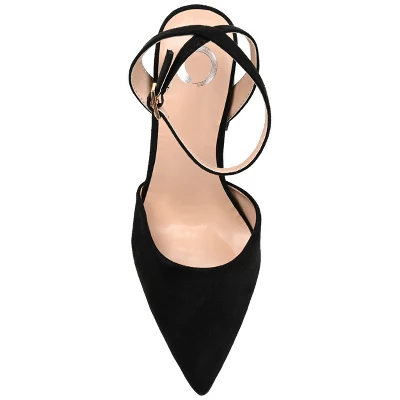 Check out the Tyyra pumps by Journee Collection – a simple yet stylish heel that’s sure to make a statement. These heels feature a pointed-toe silhouette and are made with soft, vegan leather that’s comfortable to wear all day long. With a padded insole and wide-width footbed, these heels are designed for maximum comfort, while the covered block heel and ankle strap add a touch of sophistication to any outfit. Try the Tyyra pumps for a look that’s both fashionable and practical.