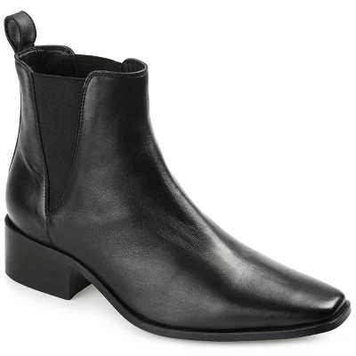 We don’t call these square-toe boots classics for nothing. The Brooklee by Journee Signature is a pull-on silhouette featuring soft genuine leather uppers lined with a supportive 4 mm Tru Comfort Foam™ insole. An angular stretch gore detail and a low stacked heel complete the look.