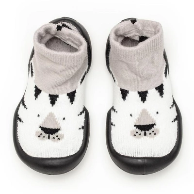 Cute, cuddly, and athletic! Just like your little one! White tiger face with a black and grey rubber sole. This tiger face will make your little one roar with excitement!Komuello, the most innovative & comfiest baby shoes. The most innovative and comfiest baby shoes, Komuello, are breathable, machine washable, non-slip, and BPA free. Great for indoor, outdoor, and as water-shoes at the pool/beach. These soft cotton socks are made stretchy and comfortable for an easy on, easy off for tiny feet! All Komuello are designed in California, made in South Korea at Komuello’s own factory with the patented technology. Our QA team monitors every step from design to production to packaging, ensuring the best quality possible.What makes Komuello shoes so comfortable? 1) They have the ‘patented breathable 3-layer sole’.2) Stretch cotton sock top also wraps around the little feet just like comfy socks.