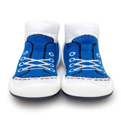 Komuello, the most innovative & comfiest baby shoes. The most innovative and comfiest baby shoes, Komuello, are breathable, machine washable, non-slip, and BPA free. Great for indoor, outdoor, and as water-shoes at the pool/beach. These soft cotton socks are made stretchy and comfortable for an easy on, easy off for tiny feet! The Sneakers style you’ve been looking for! This Royal blue gives it just the right tint of color. Casual and stylish sneakers make it look like real shoes and not a sock! A style you can dress up or dress down.All Komuello are designed in California, made in South Korea at Komuello’s own factory with the patented technology. Our QA team monitors every step from design to production to packaging, ensuring the best quality possible.What makes Komuello shoes so comfortable? 1) They have the ‘patented breathable 3-layer sole’.2) Stretch cotton sock top also wraps around the little feet just like comfy socks.